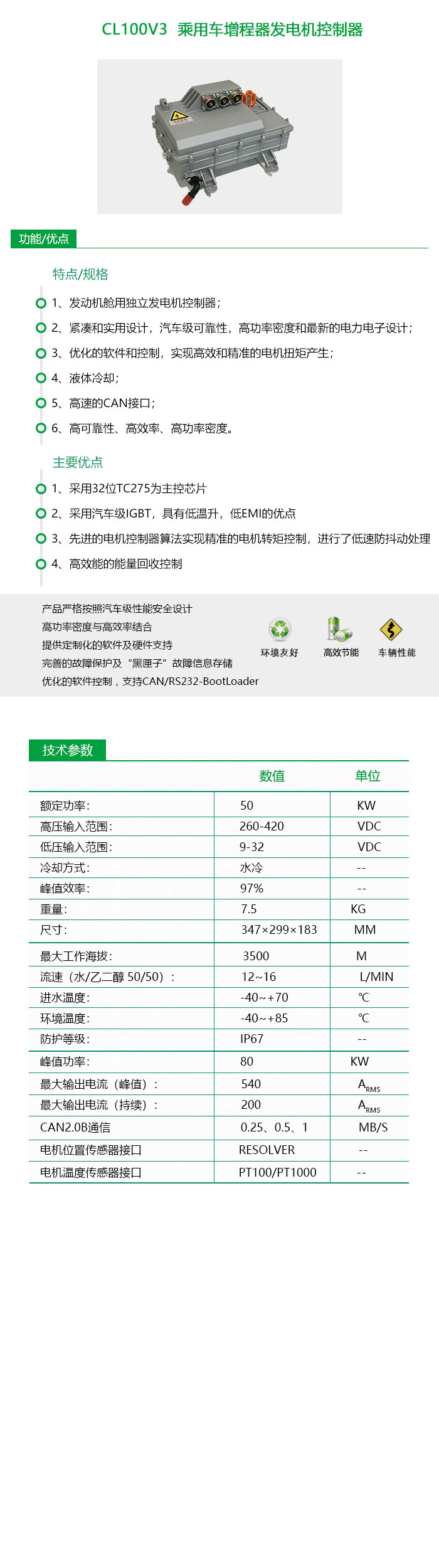 CL100V3 乘用車增程器發(fā)電機(jī)控制器