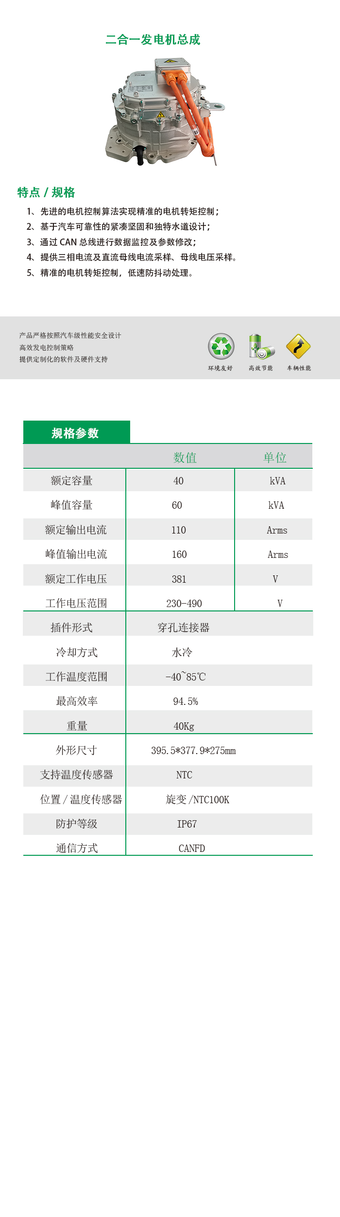 二合一發(fā)電機總成