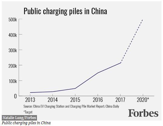 這就是中國(guó)真正領(lǐng)先的地方。它已率先開(kāi)展了公共充電樁的大規(guī)模開(kāi)發(fā),到2017年底已有214,000套。這些充電樁向每一個(gè)人開(kāi)放,加上私人充電站就達(dá)到了232,000套。