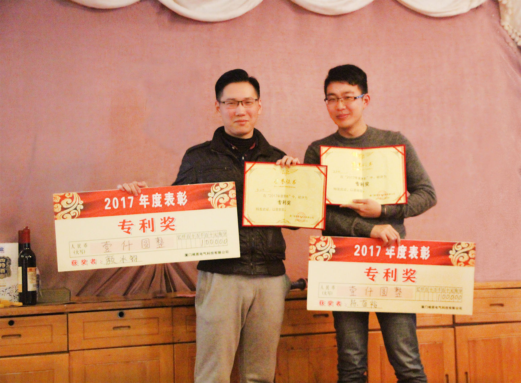 大會在公司領(lǐng)導(dǎo)精彩而真情的新年獻詞中拉開了帷幕,對2017年廈門唯質(zhì)電氣科技有限公司的發(fā)展作了全面客觀、公正的總結(jié),并提出了2018年公司未來的發(fā)展思路。最激動人心的時刻莫過于2017年度先進集體、先進個人表彰與嘉獎的頒布。2017年唯質(zhì)電氣兩項專利申請獲批,先進集體、先進個人若干。